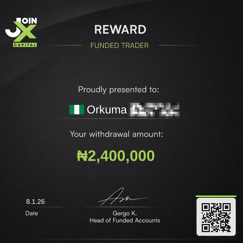 JoinX Capital is backing talented traders worldwide. If you have the skills - this is your opportunity. Follow the rules, pass the challenge, get funded up to ₦800 000 in trading power per each challenge.